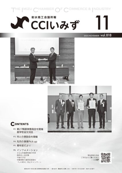 会員企業のみなさまに、会報誌「CCI いみず」(毎月発刊)をお届けしています。